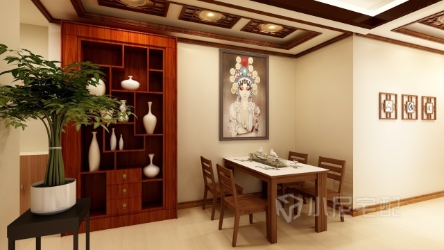 新中式的裝修風格中加入了一部分現代設計,充分照顧了新老不同階段客戶的審美需求。全屋采用定制家具,這樣能夠盡可能的利用房屋空間。避免了小戶型收納空間不夠的問題。全屋大約12W。