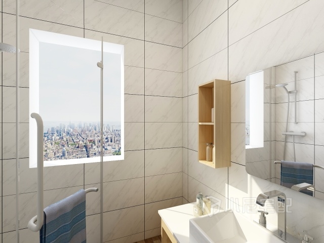 衛生間雖然小,盡量集成了洗浴房,讓空間利用更加高,而且達到了客戶需求的干濕分離