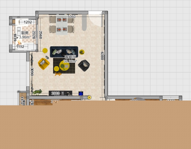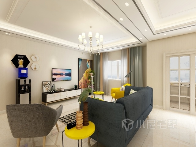 客餐一體,沒有沙發背景墻,客廳豁然開朗
