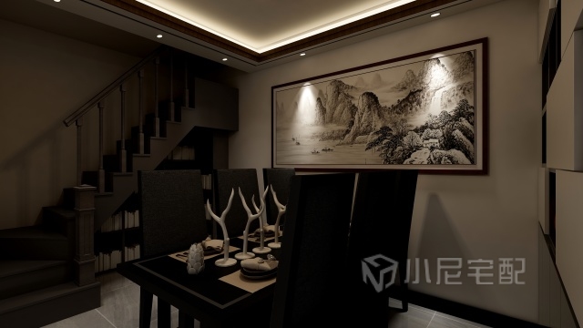餐廳處采光較差,所以需要更短的燈光設(shè)計(jì)