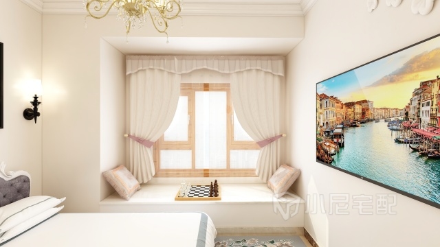 主臥室飄窗很大,充分利用飄窗做個(gè)休息區(qū)