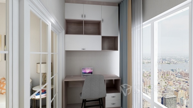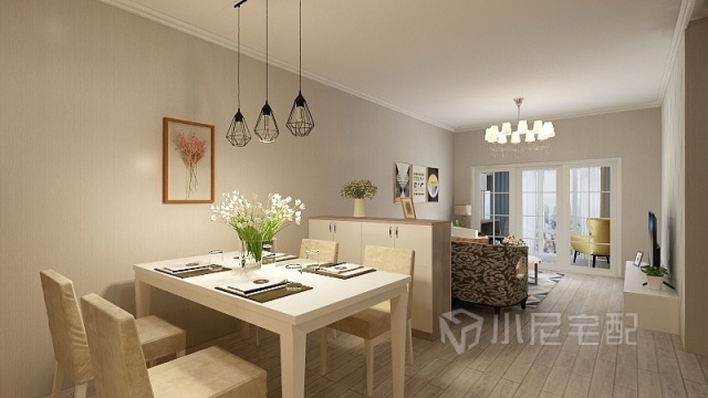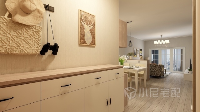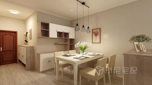 半高柜將餐廳和客廳分隔開,增加收納空間,同時統一風格