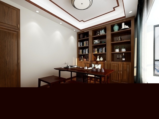 書房兼茶室 知己三兩座,茶香飄四溢。對(duì)話閑情事,偷得靜半日。