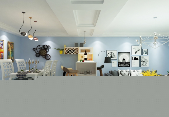 個人早起作品相當滿意的效果,客餐廳的藍墻業主非常喜歡??筒蛷d是用3d做的燈光效果完美。
