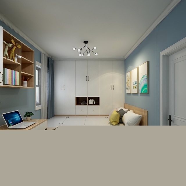 客廳以灰色現(xiàn)代簡約裝飾,給業(yè)主一種回家舒服自在的感覺,臥室以不同的風(fēng)格體現(xiàn),以滿足孩子的愿望,整體以舒適,時(shí)尚結(jié)合打造出一個(gè)完美的家。