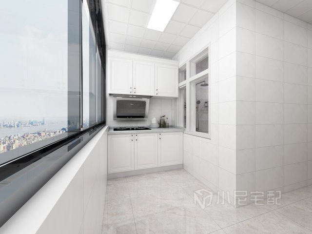 廚房是一個家中必不可少的生活區域,以最簡單的色調打造出高級的質感。陽臺并入廚房區域,使空間更加寬敞。