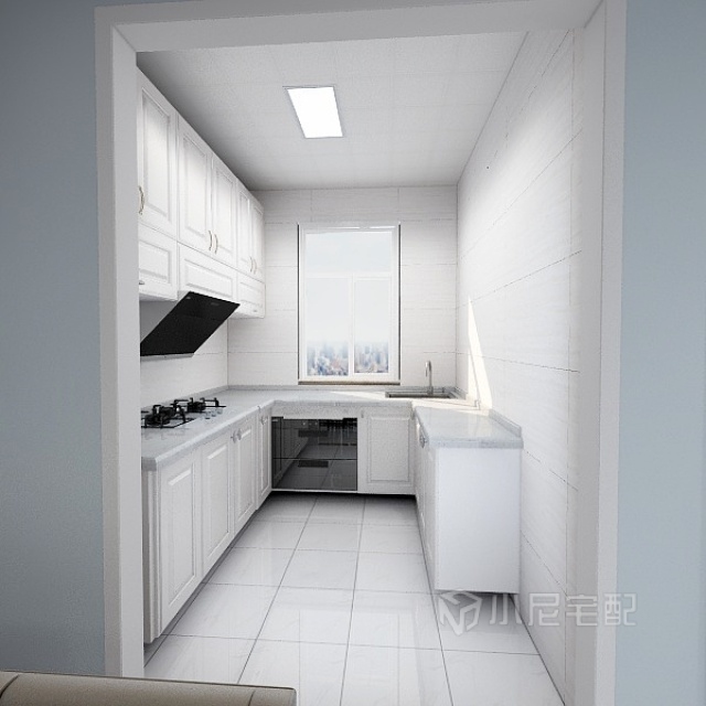 廚房比較小,所以在吊柜做了三層增加儲(chǔ)存功能,右側(cè)做了40厘米的地柜可以放各種電器,電飯鍋,電水壺等。