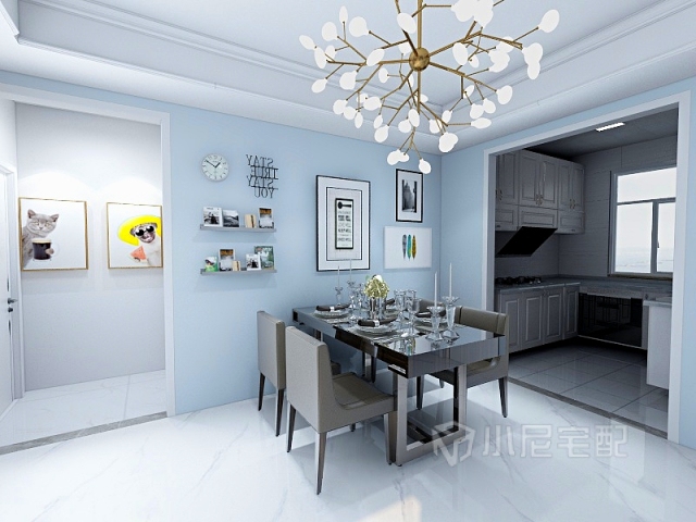 餐桌背景為照片墻,記錄生活的點(diǎn)滴。