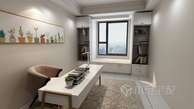 書房,飄窗設(shè)計(jì),1.2米乘1.7米的大飄窗,夏天在上面曬太陽完全沒有問題。