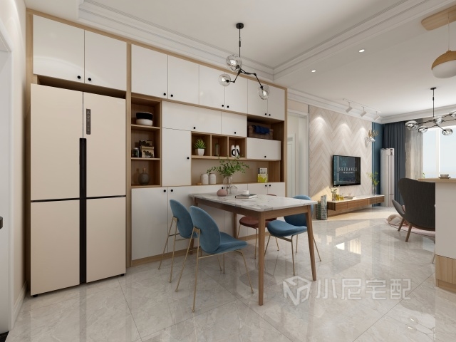 餐桌以及酒柜和地板四者完美的融為了一體,簡潔、干凈、利落的體現了整個設計和裝修。