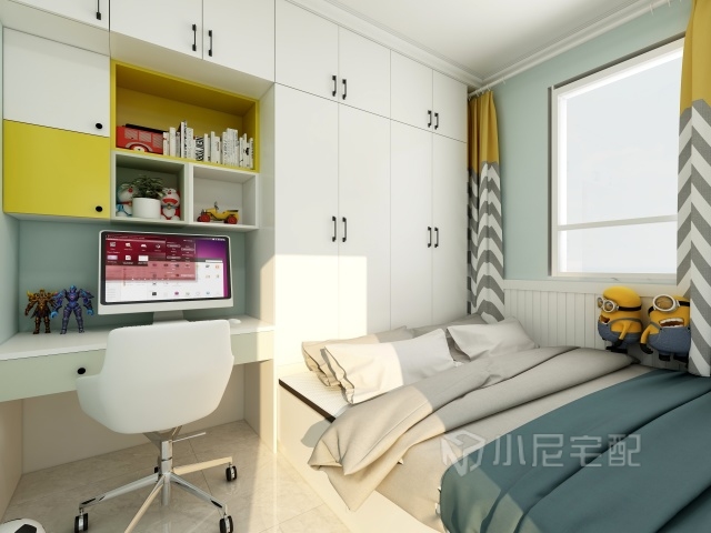 柜體與書柜的融合,床簾與床的融合,是多么溫馨