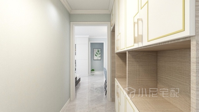 進戶門處做轉角輕奢鞋柜,顯得簡單而不單調,增加儲物空間
