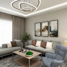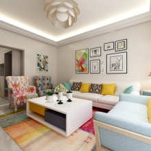 此方案為現代簡約! 設計里有冷靜的灰色、 有柔和的暖色、還 有大膽的顏色跳躍 。生活不是一塵不變的, 但是 一天過去褪去工作的緊張感、 生活的壓力感 ,回到家是恬靜、闊以的!