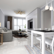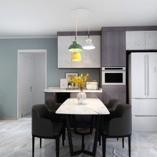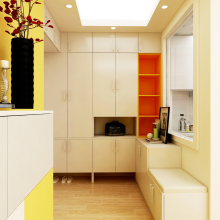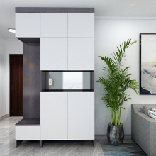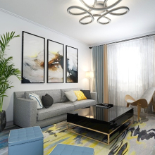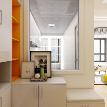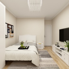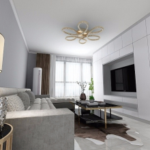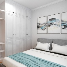 方案整體風(fēng)格趨向于簡約風(fēng)格,戶型采光較好,大面積灰色并不會另空間壓抑,配合白色踢腳線、木地板和原木色家具,使整個空間能更好的展現(xiàn);原是三室一廳兩衛(wèi)的戶型,為滿足業(yè)主對于衣帽間的需要,將主臥內(nèi)的衛(wèi)生間改造成衣帽間;原戶型內(nèi)過道很寬,占用了很大的空間,后將隔墻拆改,占用一部分衣帽間的空間,使過道一側(cè)留出內(nèi)嵌展示柜的深度,弱化3米多長的過道。
