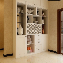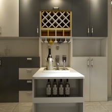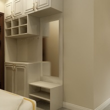 整個空間以白色為主,黑灰為輔,色調偏暖。鞋柜,酒柜,衣柜主白色,猝不及防跳出深色。明暗隨意,率性而為??!