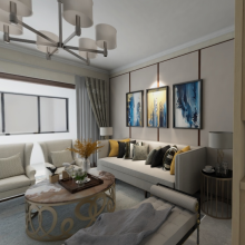 個人早起作品相當滿意的效果,客餐廳的藍墻業主非常喜歡。客餐廳是用3d做的燈光效果完美。