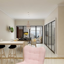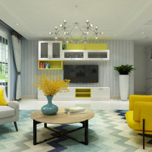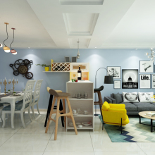 120㎡高層小三居 布局緊湊,以簡約為主,簡約不等于簡單,它是經過深思熟慮后經過創新得出設計和思路的延展,不是簡單“堆砌”和平淡的“擺放”,家庭的簡約不只是說裝修,還反映在家居配飾上的簡約,比如不大的屋子,就沒有必要為了顯得“闊綽”而購置體積較大的物品,相反應該就生活所必需的東西購買,而且以不占面積、折疊、多功能等性能為主。