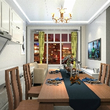 整個空間的顏色搭配以黃色為主,使整個空間顯得更加溫馨,家裝、家具一體價14.5萬。