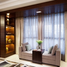設(shè)計(jì)師運(yùn)用快樂的色彩、摩登的藝術(shù)品以及裝飾藝術(shù)的不同手法,為崇尚前衛(wèi)和自由的男女主人打造了一個(gè)充滿夢想且氣質(zhì)不俗的家。 在配飾陳設(shè)上,設(shè)計(jì)師充分運(yùn)用縝密而細(xì)膩的木,加上棉麻、絨布、皮質(zhì)等各種材質(zhì)的組合。整個(gè)空間不因家具的純正深色感到壓迫和沉重。銅制的藝術(shù)品、玻璃的擺件、陶瓷的瓶罐等,營造出深淺變化的剔透空間與生活品質(zhì)。祥云的元素的融入將西方優(yōu)雅與東方靈性相糅合,而極具時(shí)尚魅力的波普紋樣組合,在情緒交錯(cuò)、花紋橫陳的靡靡氛圍中,生命也展露出妖冶的一面。