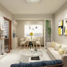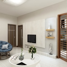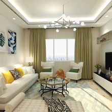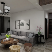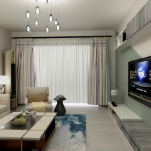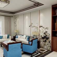 本戶業主是個三口之家,45歲。女兒21歲。一家人比較喜歡沉穩的裝修風格,女主喜歡書法,整個效果是以古典元素為中心,考慮客戶年齡,軟飾上我選用了米色和各種藍色呼應?;钴S了深顏色帶來的沉重感。