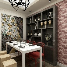 該戶型為中式裝修風格,通過各種中國元素體現東方裝飾的美,整體空間裝飾以紅色,胡桃色為主,使東方意蘊更加鮮明