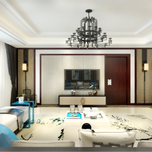 在設計上提煉了中式經典元素并加以簡化和豐富,在家具形態上更加簡潔清秀,同時又打破了傳統中式空間布局中等級、尊卑等文化思想,空間配色上也更為輕松自然。