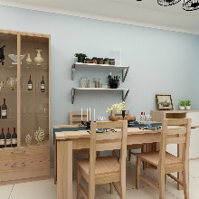 現代簡約風格,本案例才色彩上的選用以淺色系為主,藍色為主色調,黃色,綠色,打造一個生機盎然的空間,線條上的設計偏于簡約,有效的節約空間,同時增加收納功能