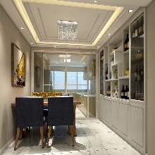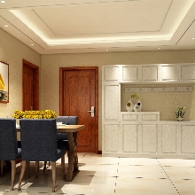 黃色紋理的壁紙配上新白橡柜子,整個空間充斥溫暖的海洋