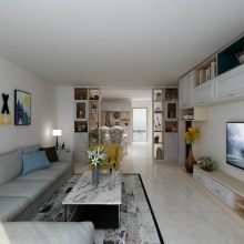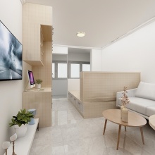 簡潔又清新的家居氛圍是人們一直以來所崇尚的,簡潔的線條與輕淺色調的拿捏,讓客廳、餐廚區域從視覺上呈現完全開放的開闊感。