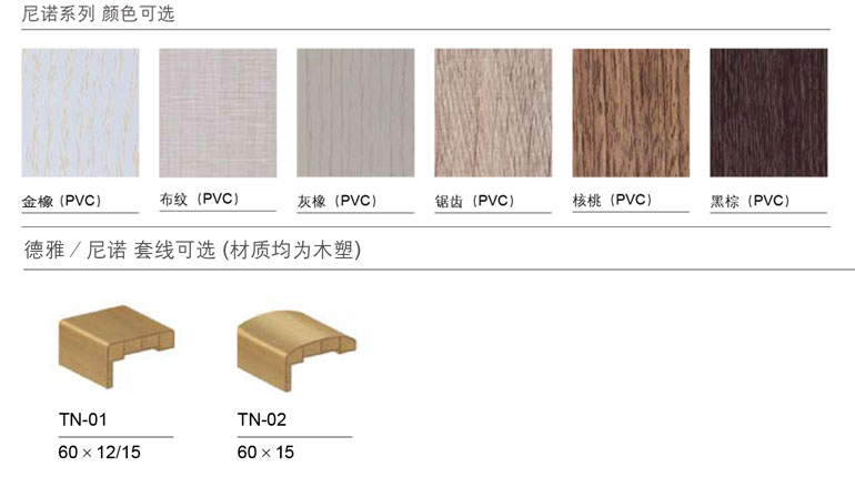 | 可選顏色 | 金橡、布紋、灰橡、鋸齒、核桃、黑棕 |