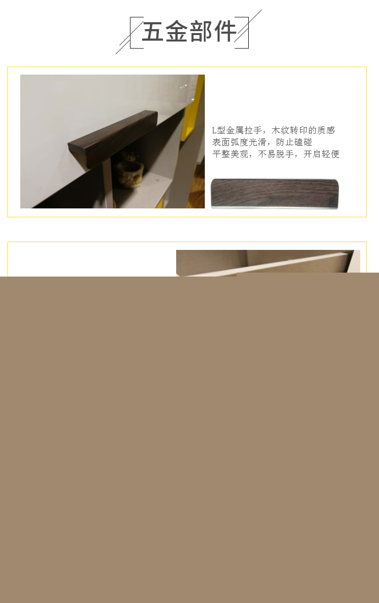 | 細節描述 | 布局小而精致,整體節奏強,立體感豐富,可以折射出主人時尚干練的風格,吊柜高低落差具有層次感,門板搭配虛實結合,讓視覺有平衡點,使整體空間看著不單調。 |