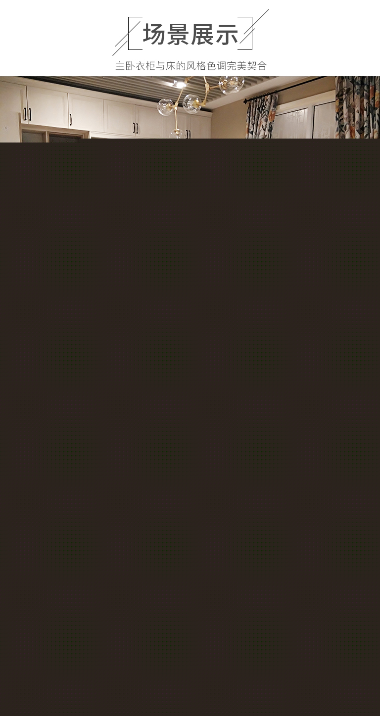 | 細節(jié)描述 | 主臥衣柜與床的風(fēng)格色調(diào)完美契合,定制衣柜的時候?qū)酪苍O(shè)計其中,加強了臥室的整體性,開放格和上翻門的吊柜、小巧的抽屜盒,把收納設(shè)計用到每一個細節(jié)。儲藏與辦公兼得,適合都市上班的人群。輕巧時尚的電視柜,給人一個美好的閑暇時光。 |