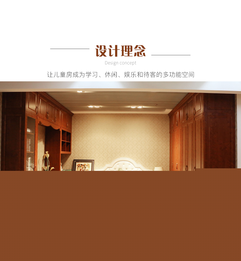 | 細節描述 | 房中的飄窗增加了戶型采光、通風的功能,也為房間的整體布局增添了建筑魅力。書桌和飄窗結合起來,合理的利用上了每一處空間,讓活動空間更大了起來,方便學習。島臺讓房間有更多的儲物空間,衣柜更方便存取衣物。 |