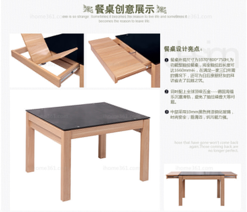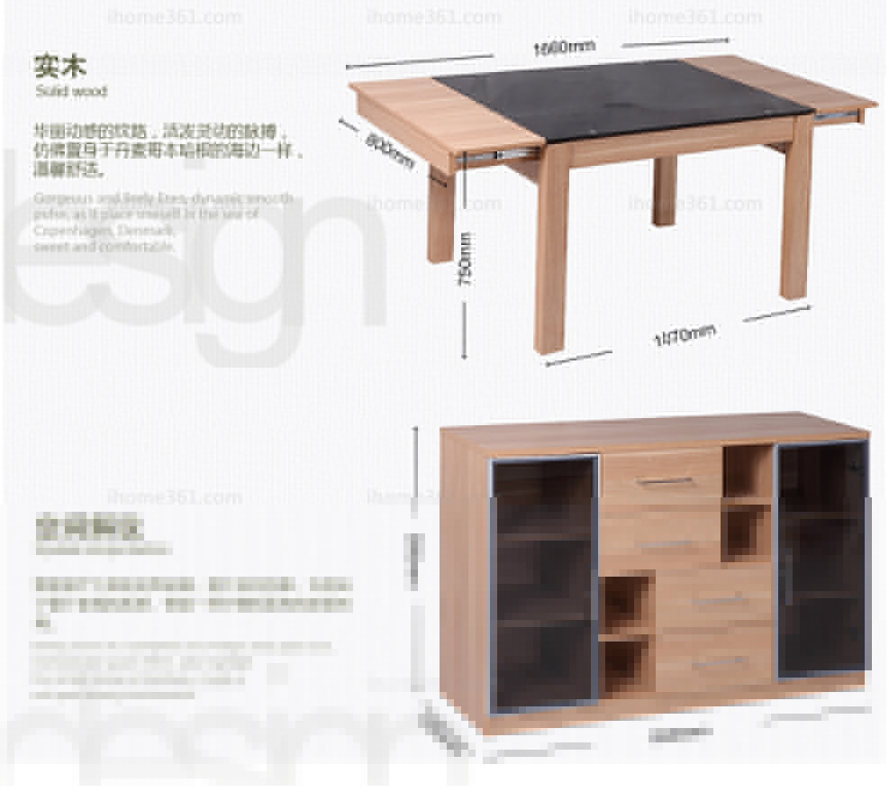 | 規(guī)格 | 餐桌:1070(1660)*800*750mm 餐椅:450*450*850mm 餐邊柜:1500*400*995mm |