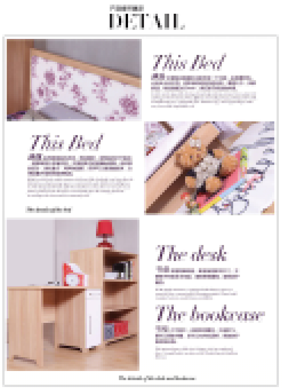 | 規格 | 書架:2445*366*1797mm 電腦桌:1000*500*745mm 書柜:1000*500*1227mm 衣柜:900*420*1797mm 床頭:1364*36*1000mm 床箱:2035*1260*400mm 床墊:1200*2000*100mm 三屜柜:798*420*639mm 裝飾鏡:1200*600*25mm |