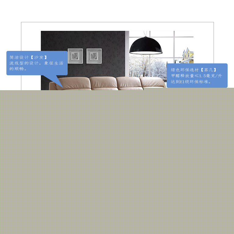 | 商品清單 | 組合沙發1件、定制電視柜1件、茶幾1件 |