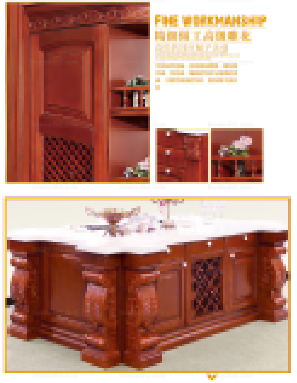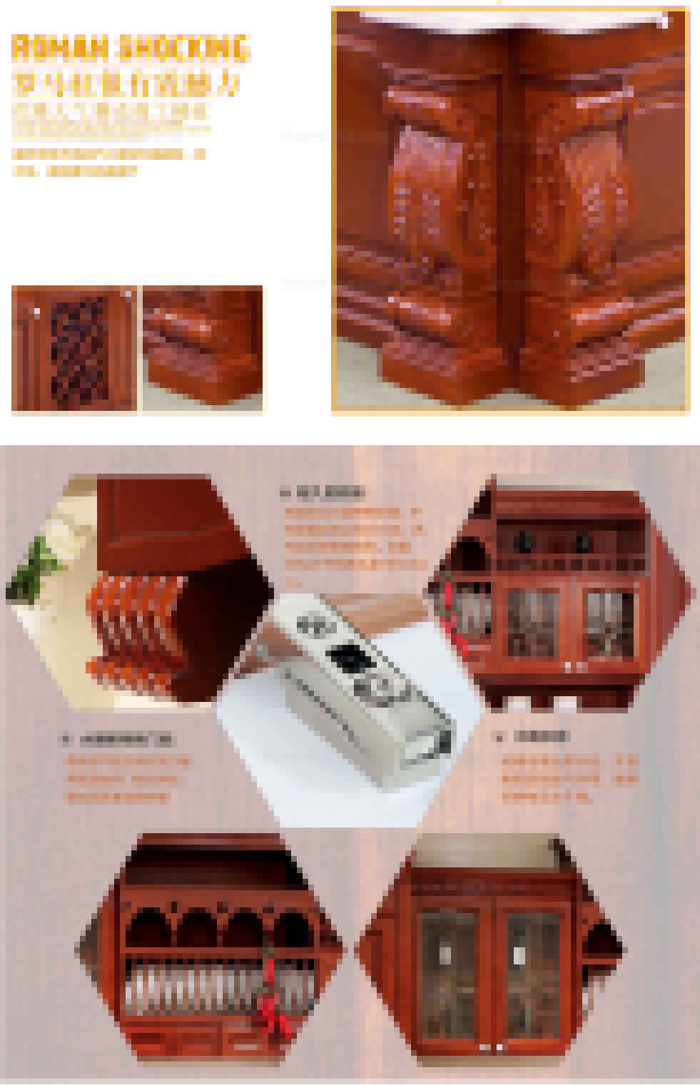 滿目的櫻紅、動人的紋理、仿古的造型、深厚的底蘊,使皇室家族的高雅與高貴體現的淋漓盡致; 大氣沉穩的設計與精選的天然材料相得益彰,造就了如此完美的藝術作品。