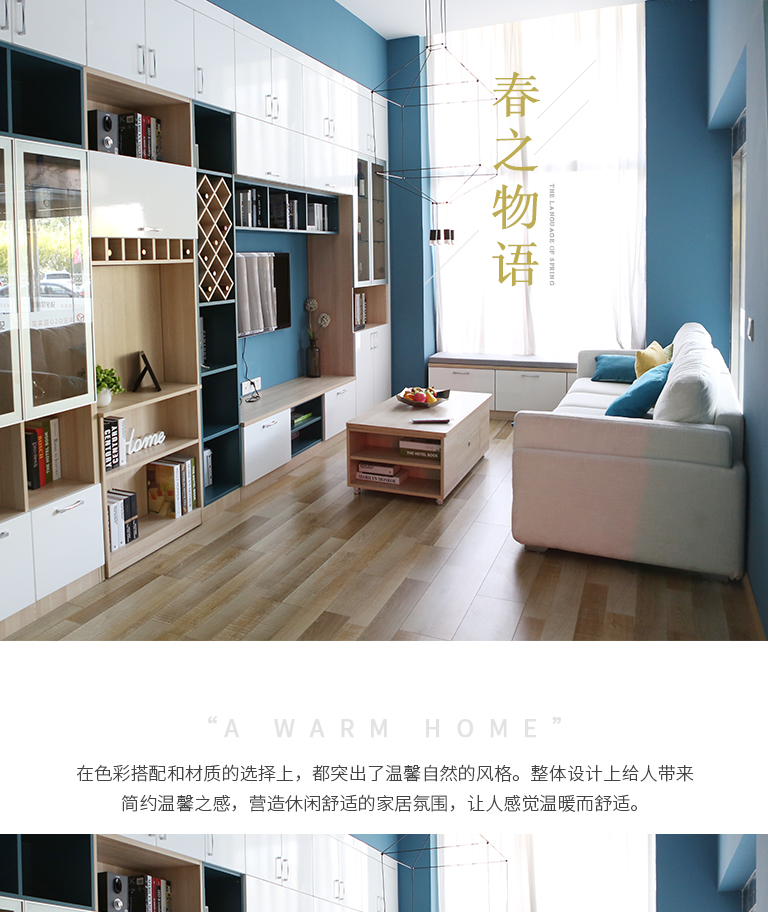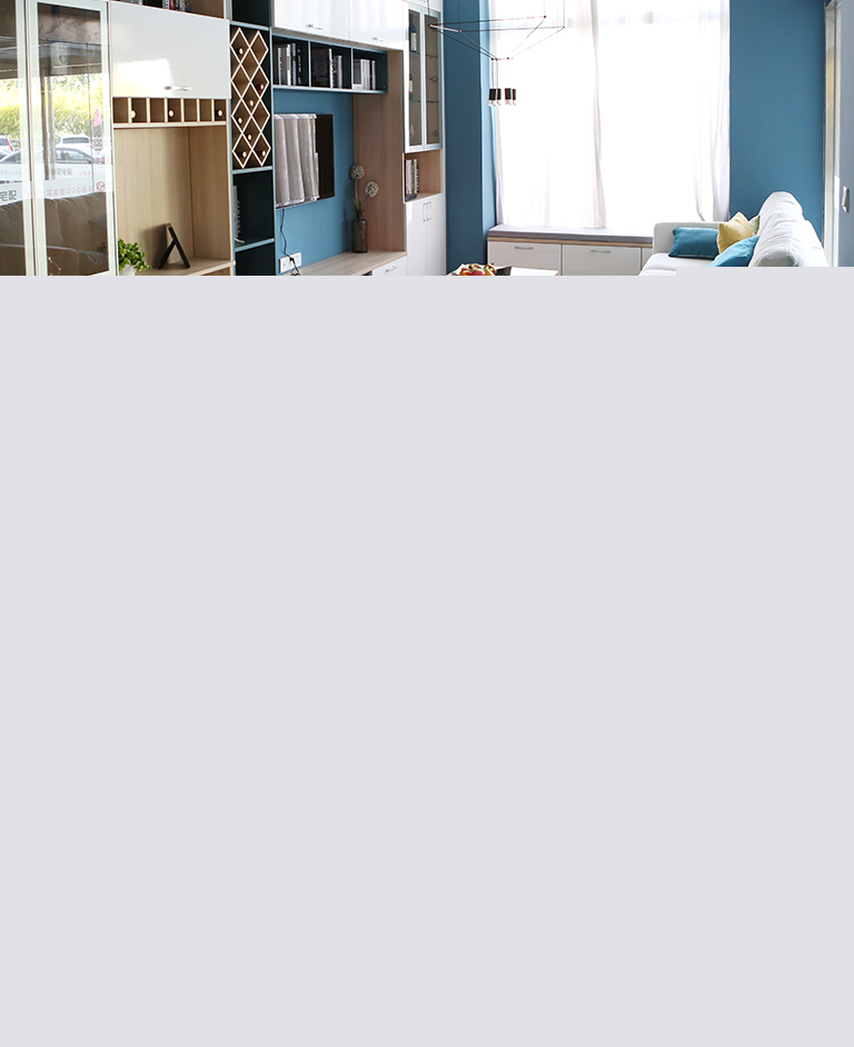 設計師將電視柜、書柜、展示柜、儲物柜等合為一體,再配上模塊化設計手法,大模塊中包含著小模塊,可以不受空間限制,自由組合,隨意中遵循著規律。