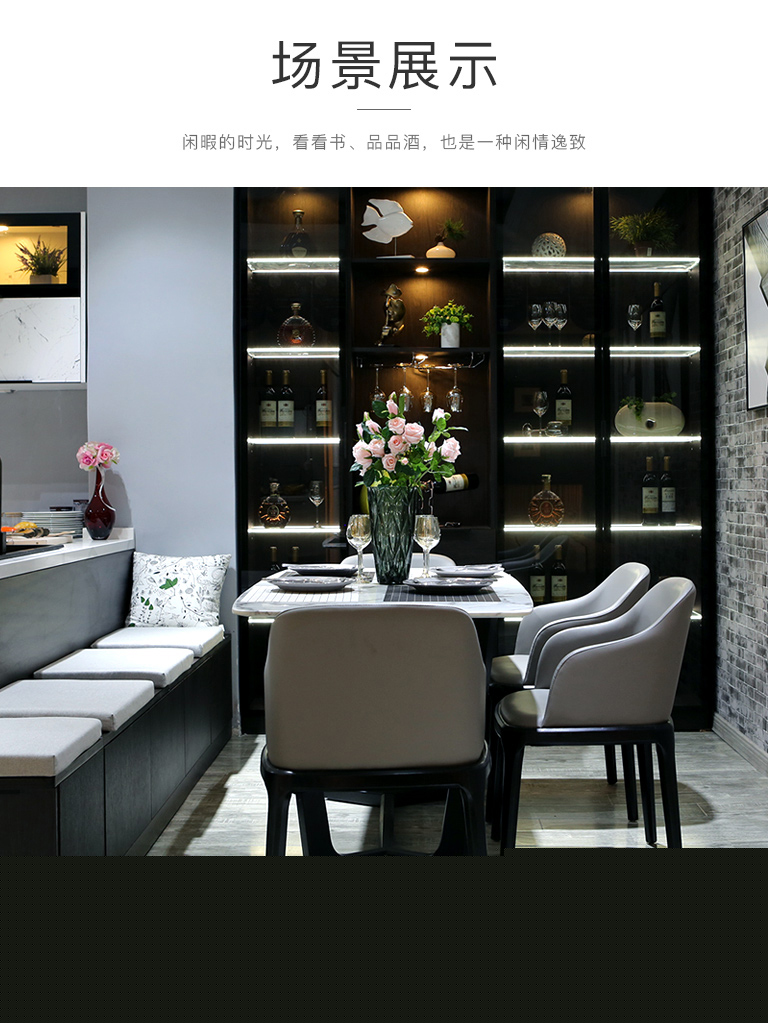 | 產品特點 | 餐廳定制了大容量餐邊柜,風格完整統一,在狹小的空間用組合餐柜餐臺形成盡可能大的收納力,空間最大利用化 。針對小戶型的特別設計,讓餐邊柜容量與櫥柜不相上下,還可以用來擺放需要展示的餐具。坐臺可以做三個人,下方和背面有一個收納的空間。餐臺的收納功能強大。 |